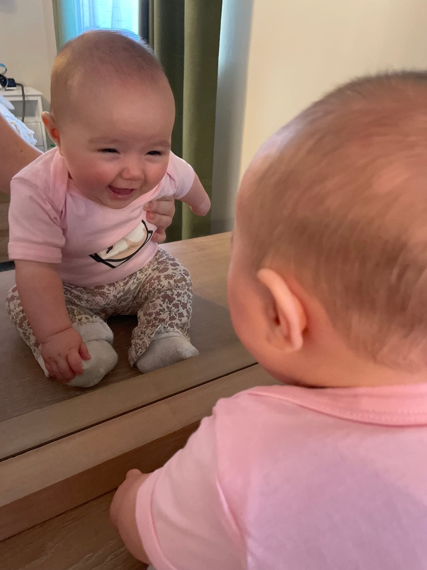 Lucy gets her dopamine kick every time she looks in the mirror. I’m not sure she realizes yet that she’s not looking at another baby, but I just love how much she loves looking at herself. I want to be like Lucy. When I look in the mirror I see a body that has been through almost two decades of chronic pain, two childbirths, and grief beyond measure. But I also see a resilient and strong body that has somehow carried me through 40 years of life. I want to celebrate that and light up as much as Lucy does when I look at myself.